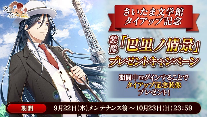 また、イベント『調査任務「島崎藤村のかくしごと」』と限定召装「島崎藤村のかくしごと」を開催し、さいたま文学館タイアップ記念のプレゼントキャンペーンを開始いたしました。