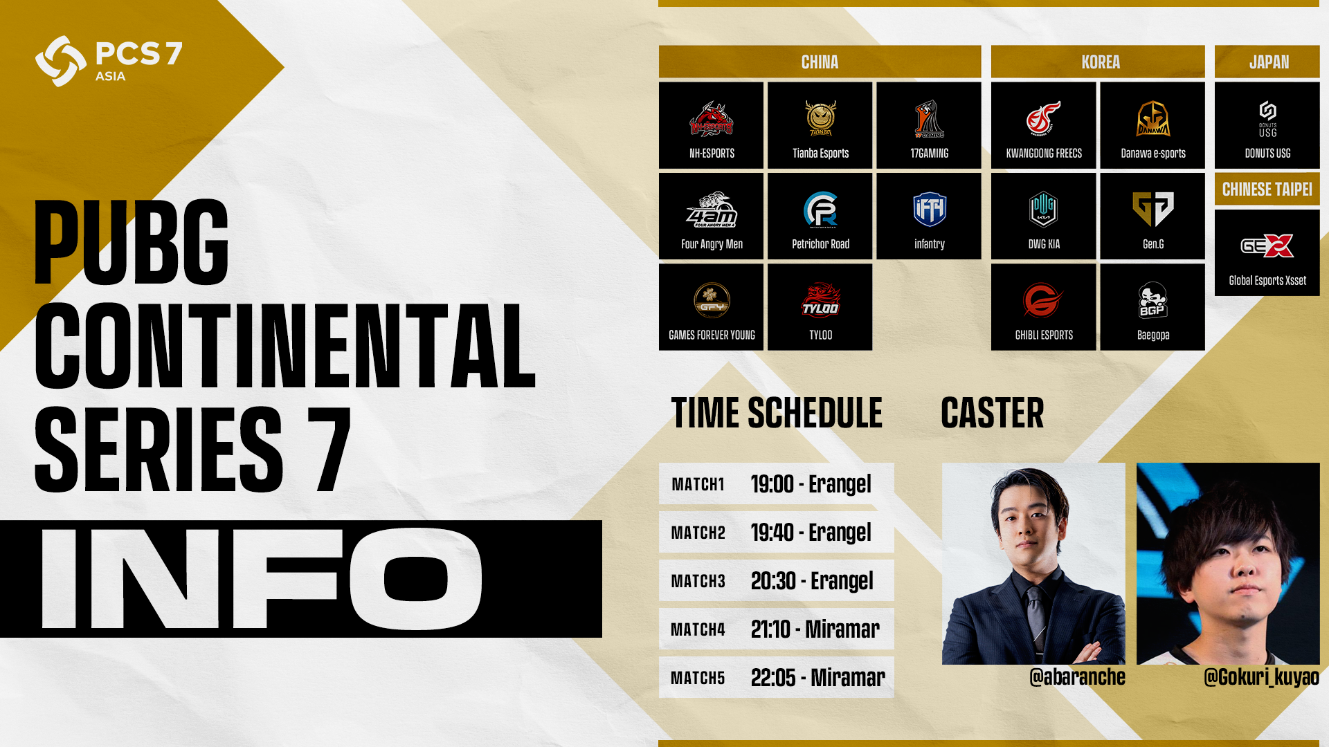 PUBG CONTINENTAL SERIES 7(以下、PCS7)は4つの地域で開催され、APAC(東南アジア、オセアニア)とAMERICAS(北アメリカ、ラテンアメリカ)は9月16日から、EUROPE(ヨーロッパ、中東・アフリカ)とASIA(日本、韓国、中国、チャイニーズタイペイ)は9月30日から大会が開催されます。