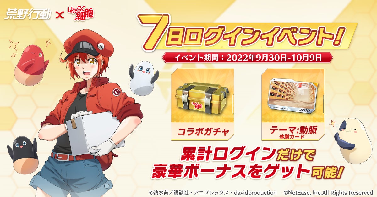 クロ、アカ、パンダ、ブチを再現した仲間や、それぞれをモチーフにしたリュックと物資箱のスキンが登場。銃器スキンは『はたらく細胞』全体をテーマにデザインしたSK12、トンプソン、05式、MC-X、AK14がラインナップされているほか、血小板をイメージしたM27も登場します。そのほか血小板と白血球(好中球)のほんわかしたイラストが描かれたスタンプも! かわいい細胞たちに癒される限定アイテムの数々、この機会にぜひ手に入れてください。