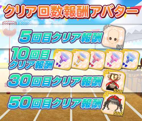 クリア回数に応じて「【SSR】玉ねぎツインテール」等、ホスト大運動会ならではの可愛い、限定豪華報酬をゲットしちゃおう♡