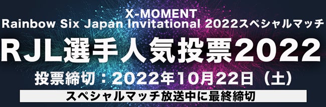 本年度もますます盛り上がりを見せる「X-MOMENT Rainbow Six Japan League 2022」。今回のスペシャルマッチ開催に合わせ、RJL人気選手を決定する『RJL選手人気投票2022』を開催します。10月13日(木)に一次投票を締め切りTOP20が決定。その後、10月22日(土)18時の放送開始直後までTOP20からTOP10を決定する二次投票を行います。最終結果はスペシャルマッチ放送中に発表します。視聴者の投票状況によりスペシャルマッチ当日にランキングが大きく変わる可能性もあり、結果は当日まで見逃せません。TOP10にランクインした選手は、Wokka率いる最強ストリーマーチームとのスペシャルマッチを予定しております。
