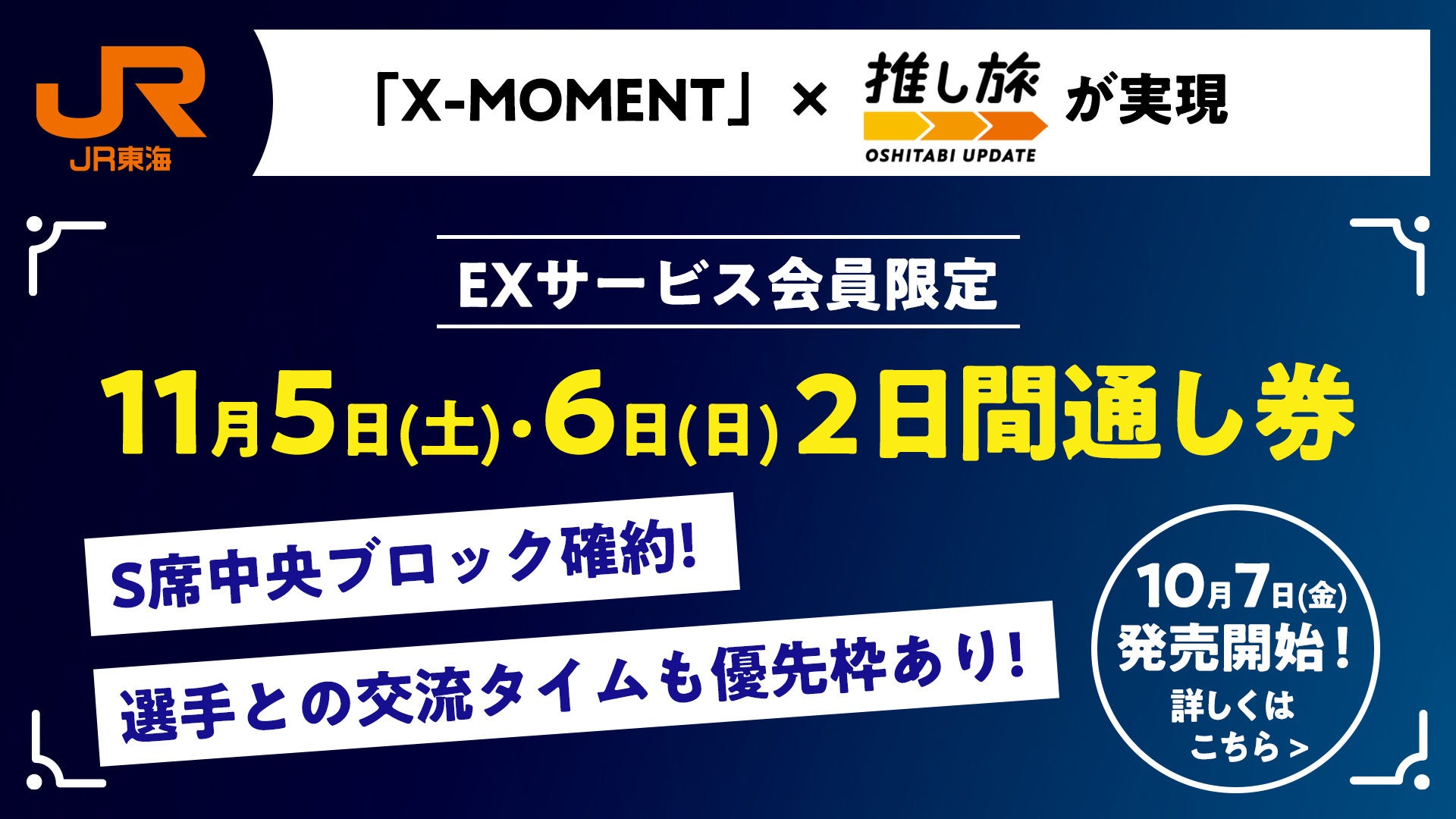 RJI 2022には、お得な「X-MOMENT」✕推し旅プランが登場します。東海道新幹線を利用してスムーズに会場までお越しください。こちらのプランでは、S席の中央ブロックを確約!選手交流タイムの優先枠などお得な特典も!関西・東海方面(「熱海駅」以西)からの来場をご検討の方は、ぜひご利用ください。