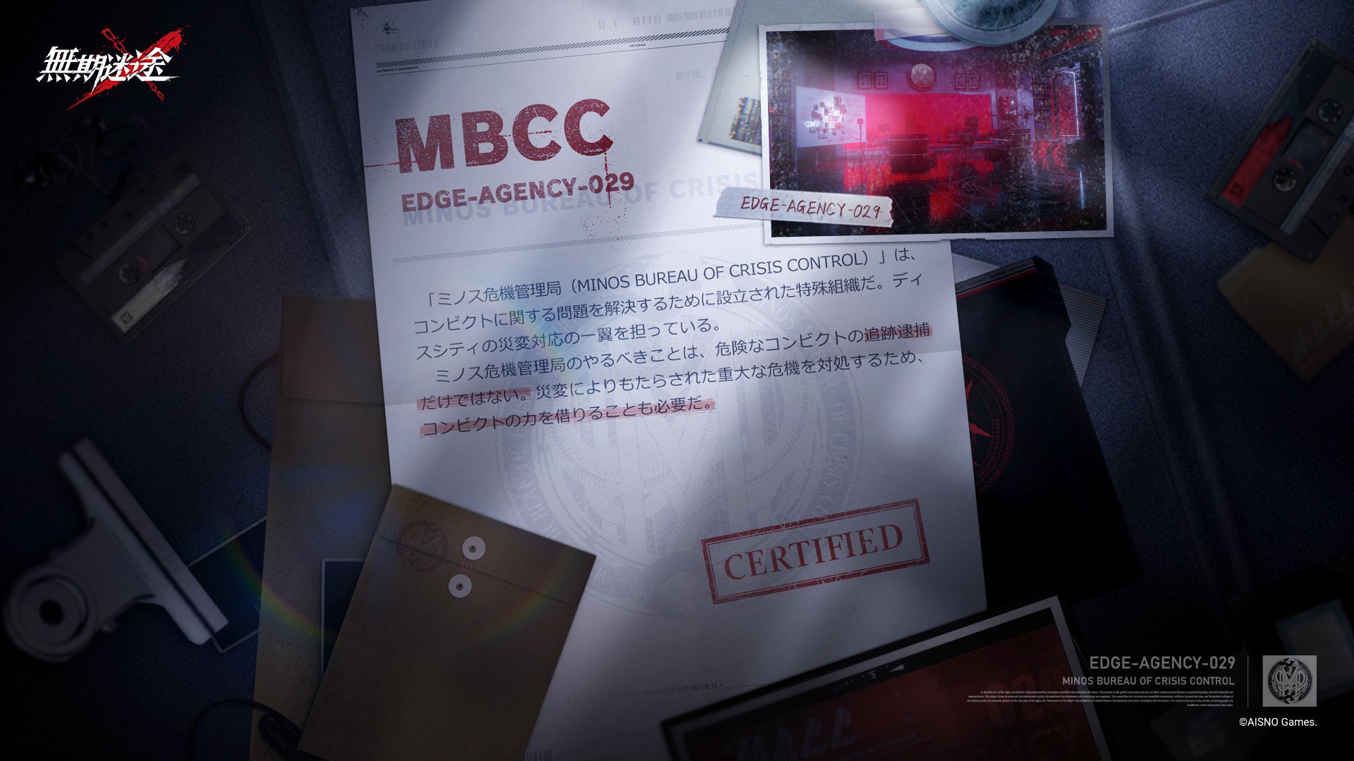 「ミノス危機管理局(Minos Bureau of Crisis Control)」は、コンビクトに関する問題を解決するために設立された特殊組織だ。ディスシティの災変対応の一翼を担っている。ミノス危機管理局のやるべきことは、危険なコンビクトの追跡逮捕だけではない。災変によりもたらされた重大な危機を対処するため、コンビクトの力を借りることも必要だ。