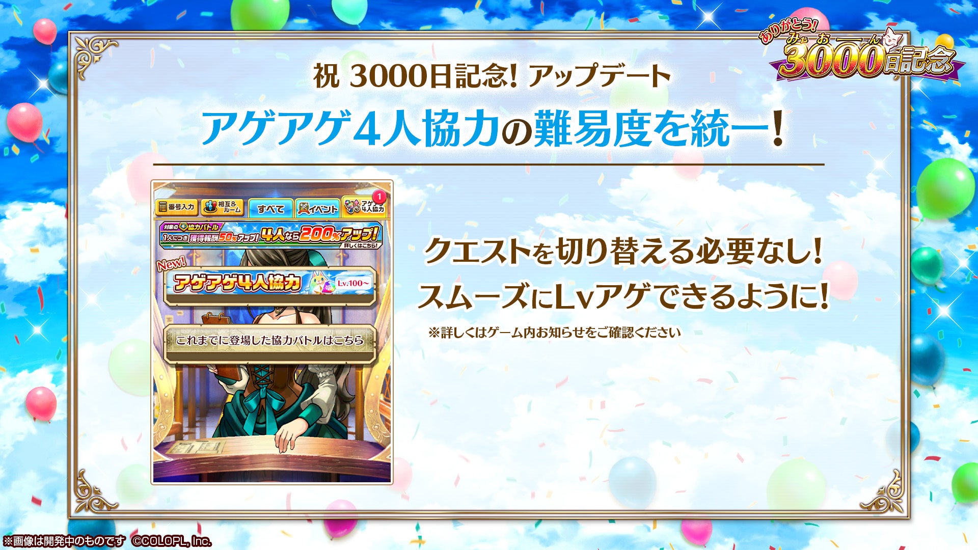 リリース3000日記念にあわせ、「白猫プロジェクトをより遊びやすく」をテーマにしたゲーム内の一部仕様に関するアップデートも実施いたしました。