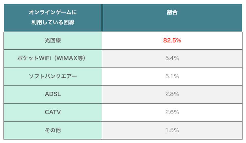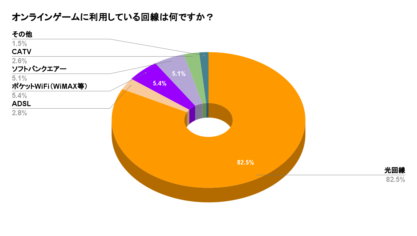 主にオンラインゲームに利用している回線を調査したところ、次のような結果となりました。