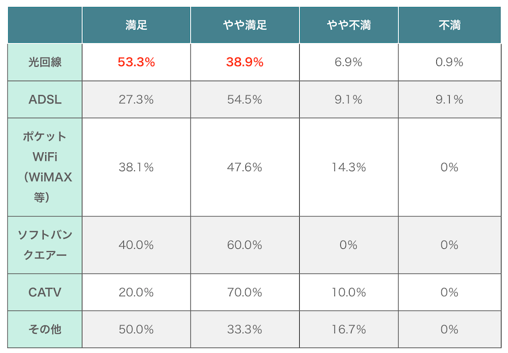 サンプル数が多いにも関わらず満足度の高い光回線はやはりオンラインゲームには最適と言えるのではないでしょうか。