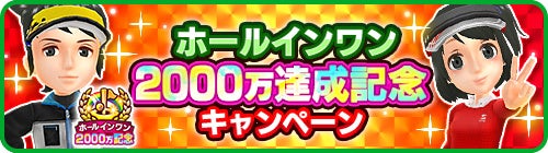 全ユーザーの累計ホールインワン数が2000万回を達成したこと記念し、皆さまへ感謝の気持ちを込めて「ホールインワン2000万達成記念キャンペーン」を開催中です。