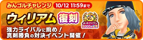さらに同日より、強力なライバル「ウィリアム」が再登場する期間限定イベント「みんゴルチャレンジ」も併せて開催いたします。