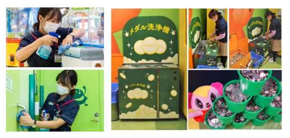 ・メダル洗浄機を設置し、定期的にメダルの洗浄を行います。