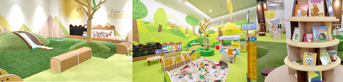 「のびっこ」は、「お子さまの成長を見守れる場所」「親子一緒にえがおになれる場所」をコンセプトとした、0~3歳のお子さまでも安心して遊べるプレイグラウンドです。