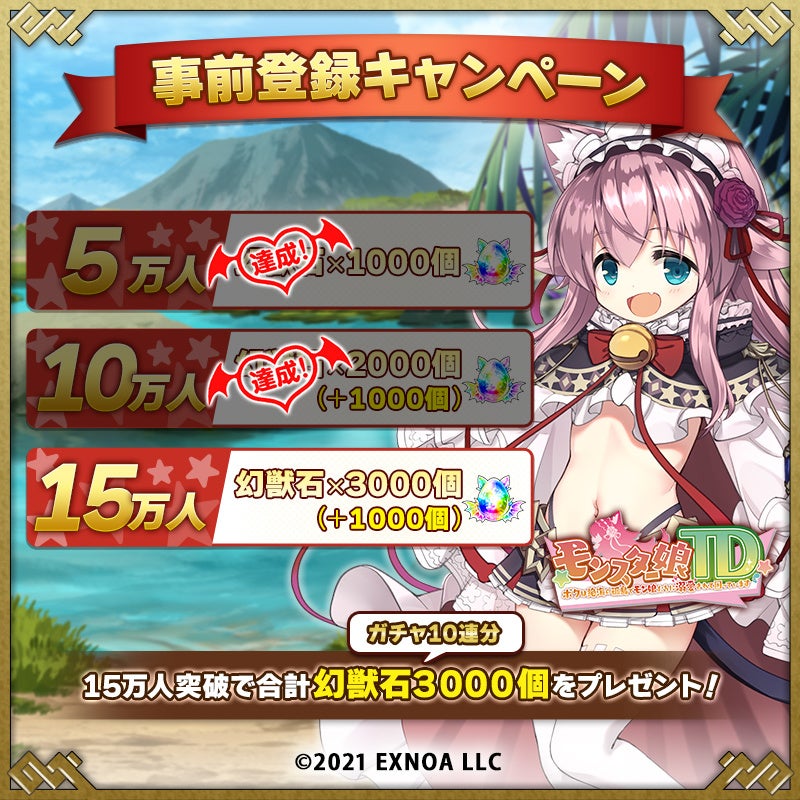 『モンスター娘TD』のApp Store版/Google Play版の事前登録を記念して、公式Twitterにてキャンペーンを開催!『モンスター娘TD』公式Twitterアカウントをフォローし、該当の投稿をリツイートで応募完了となります。