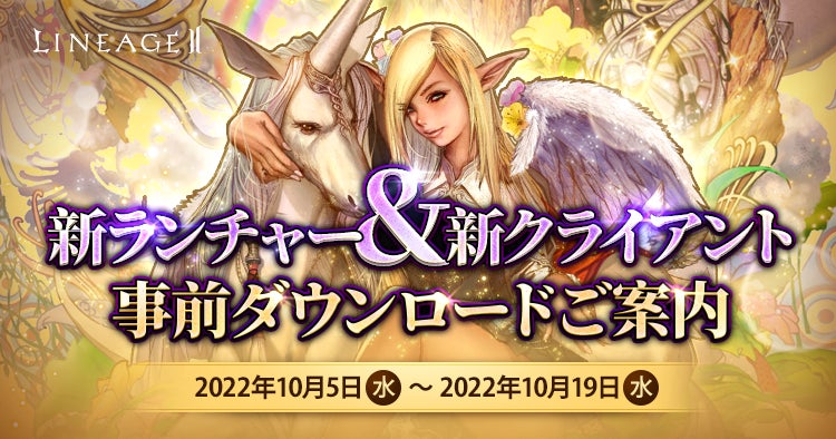 10月19日(水)定期メンテナンス終了後より、『リネージュ2』は新規ランチャー&新規ゲームクライアントに移行することとなりました。スムーズなゲーム体験をお楽しみいただけるよう、事前ダウンロードをご案内します。