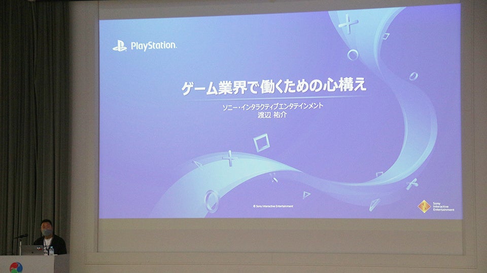 今回の講義テーマは「ゲーム業界で働くための心構え」。ゲーム開発の現場で、ハードからソフトまで様々な経験をされてきた渡辺氏から、プロとしてゲーム制作に携わる上で大切なことを教えていただきました。