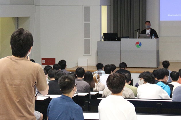 講義では、オリジナリティのあるゲームを制作するために知見を蓄えること、自分の得意分野を見つけること、プロジェクトに関わるすべてを「自分ごと化」することなど、日々の作品制作やチーム制作でも意識できそうなアドバイスも。就職活動を控えた学生も多く、皆真剣な様子で吸収しようとしていました。