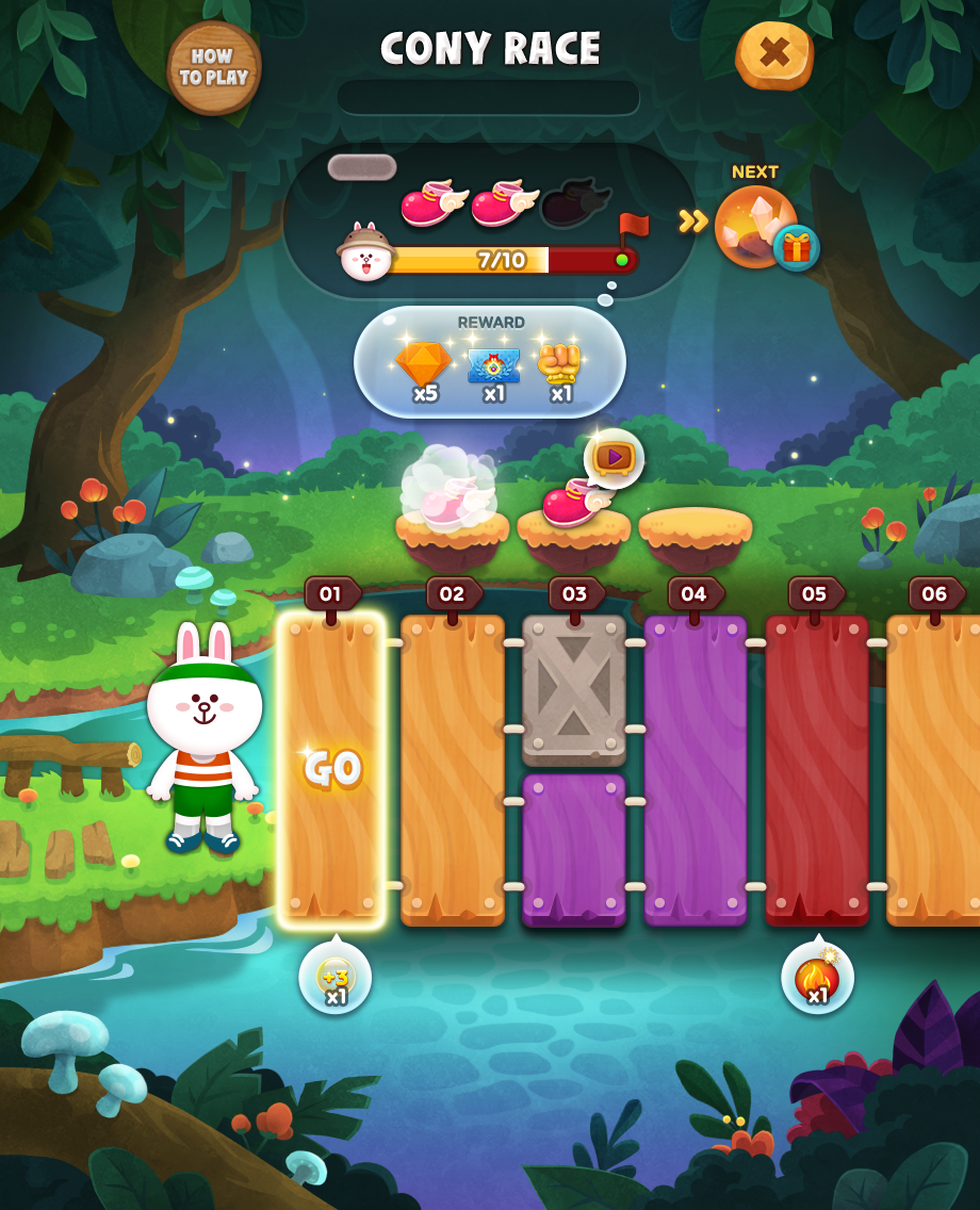 今回新たなイベントステージが登場します。1つずつステージをクリアするたびにコニーが前進し、ステージクリアに失敗すると「靴」を1つ失います。すべて失うと最初の位置に戻されます。ステージをすべてクリアすると報酬として「ハロウィンガチャチケット」が獲得できますので、ぜひ挑戦してください。
