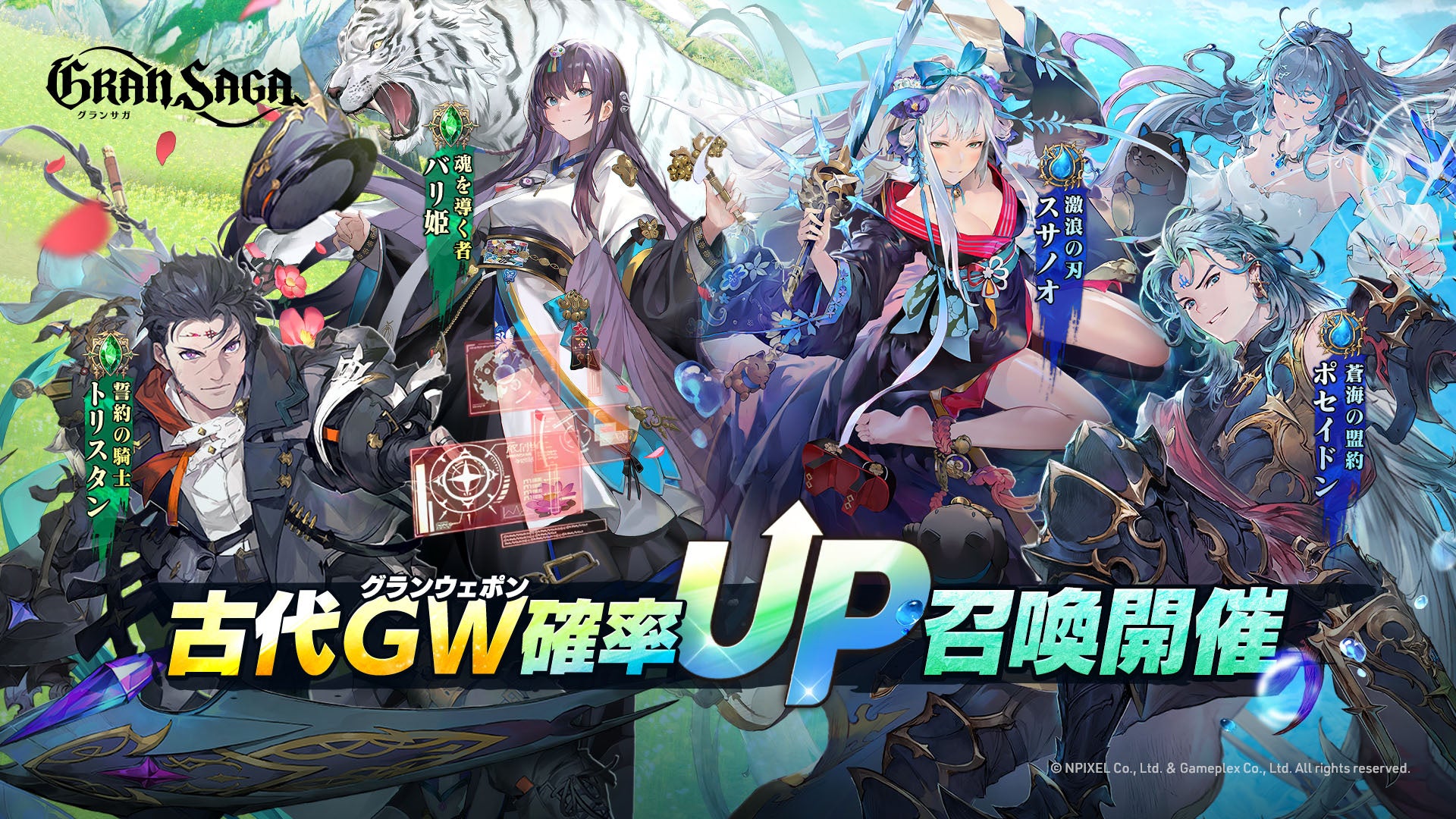 [召喚]に「古代GW確率UP」召喚ページが追加され、対象のGW提供割合が上昇します。