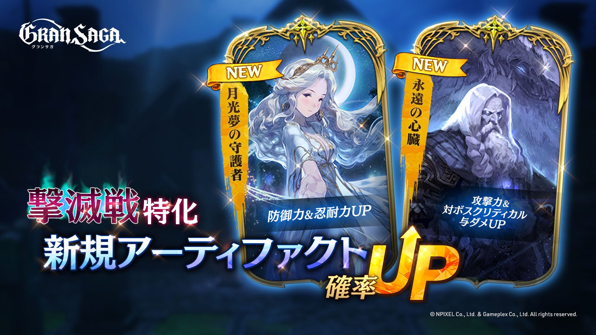 高難易度コンテンツ「撃滅戦」で有利な新規アーティファクト「SSR 月光夢の守護者」「SSR 永遠の心臓」を入手しやすくなるイベント、「撃滅戦特化 新規アーティファクト確率UP召喚」を開催いたしました!