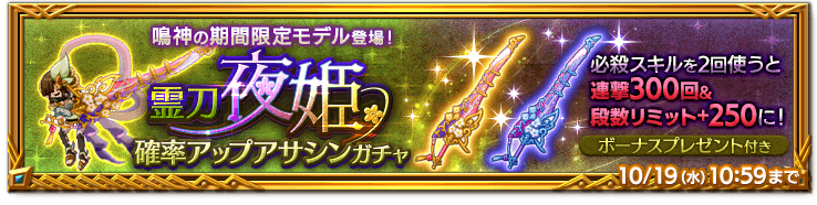 ■「霊刀鳴神」の期間限定モデル登場!「霊刀夜姫確率アップ アサシンガチャ」販売中!