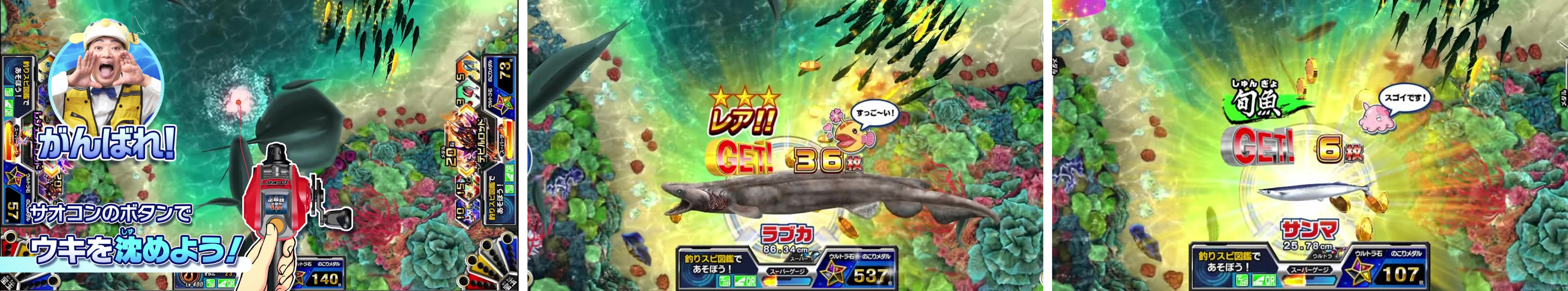 魚が食いつく前に『サオコン』のボタンを押すことで、水面に浮いたウキを沈ませ深海を泳ぐ魚を狙うことができるようになるほか、特定の季節にしか出会えない『きまぐれ旬魚』も登場。