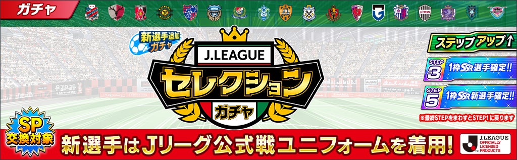 さらに今回は「Jリーグセレクション 復刻ガチャ」、「有償限定ステップアップ Jリーグセレクション 復刻ガチャ」も同時開催。2022シーズンの各チームユニフォーム着用選手を獲得するチャンス!