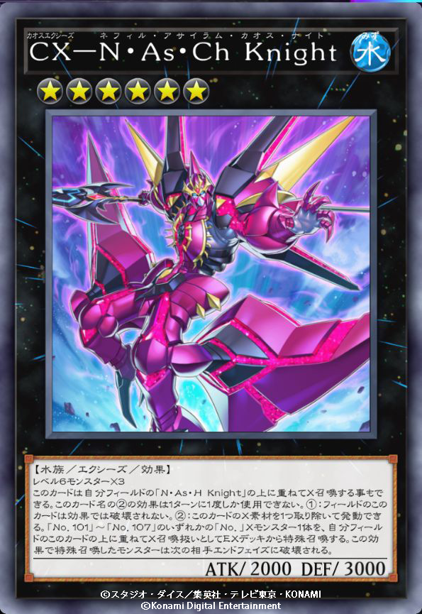自分フィールドの「N・As・H Knight」の上に重ねる、と様々な方法でエクシーズ召喚のチャンスがあるモンスターだ。守備力が3000と高く、カードの効果でも破壊されない守りの堅さが特徴。
