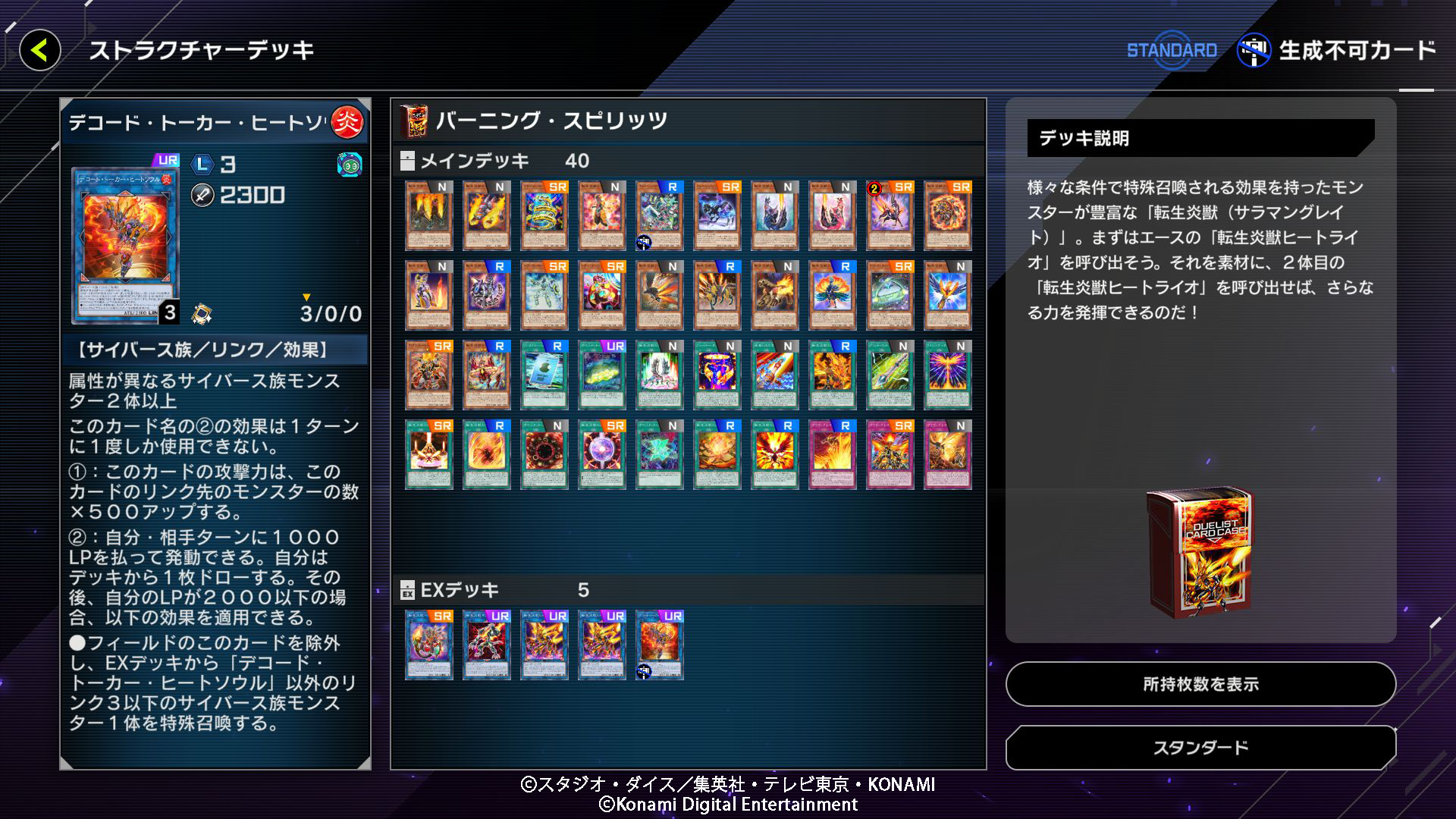 さらに、様々な条件下で特殊召喚される効果を持つモンスター「転生炎獣」が収録されたストラクチャーデッキ「バーニング・スピリッツ」も本日追加しました。