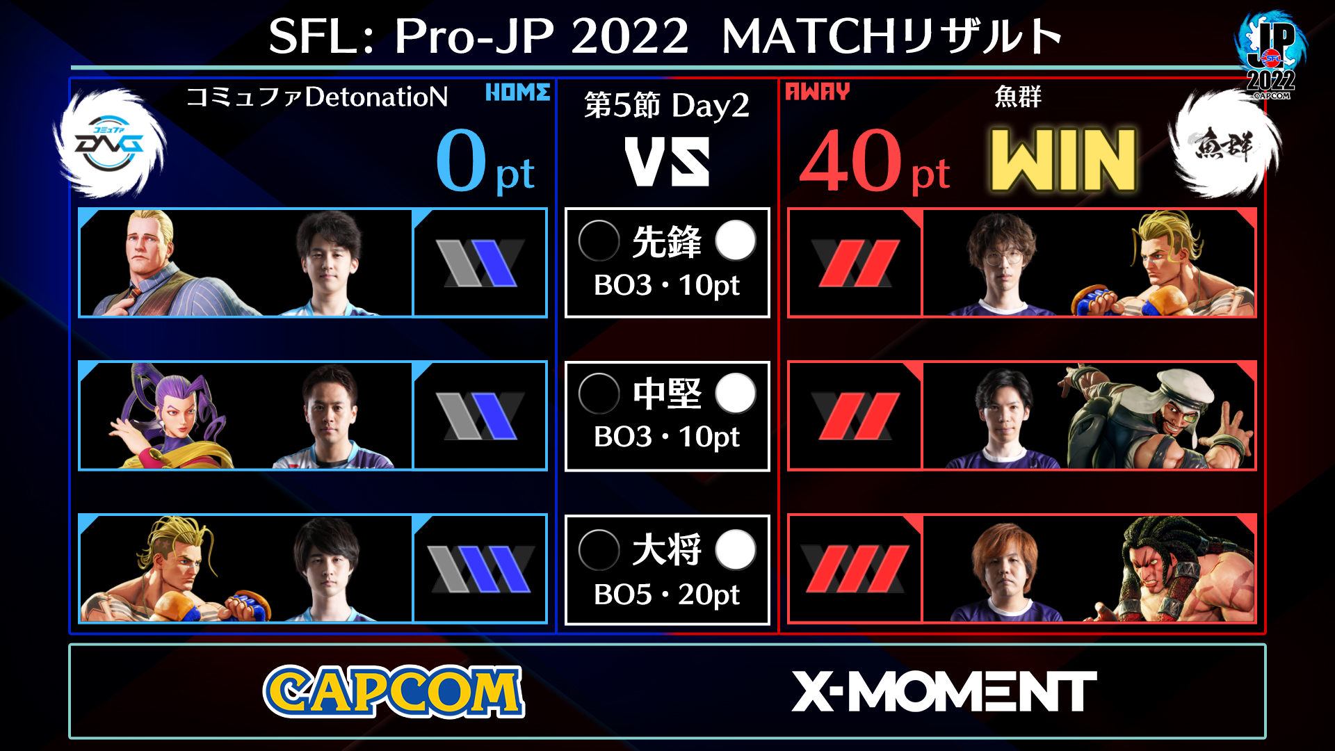 昨日、10月11日(火)に行われた「ストリートファイターリーグ: Pro-JP 2022」第5節Day2の試合速報をお知らせいたします。