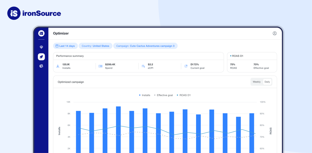 「自動最適化は、競争の激しい今日のユーザー獲得市場でスケールするための重要な要素です。だからこそ、アプリ内広告やデバイス上広告など、当社のプラットフォームのあらゆる領域に数多くのオプティマイザーを導入してきました。」とironSourceのVP ProductであるNimrod Zuta氏は語ります。「この自動化と透明性の組み合わせが、私たちのテクノロジー構築における鍵です。だからこそ、私たちは常により多くのデータを、洞察に満ちた実用的な方法で提供するために、プラットフォームの改善に取り組んでいるのです。」