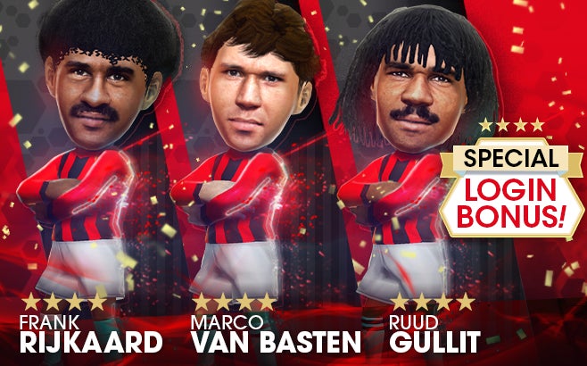 期間中7日間のログインで、「マルコ・ファン・バステン」、「ルート・フリット」、「フランク・ライカールト」、「アレッサンドロ・ネスタ」など、“4.5Half Anniversary LEGEND SCOUT”にもラインナップされた★4バージョンの選手たちが、1日ログインするごとに1名ずつ、合計7名獲得できます。