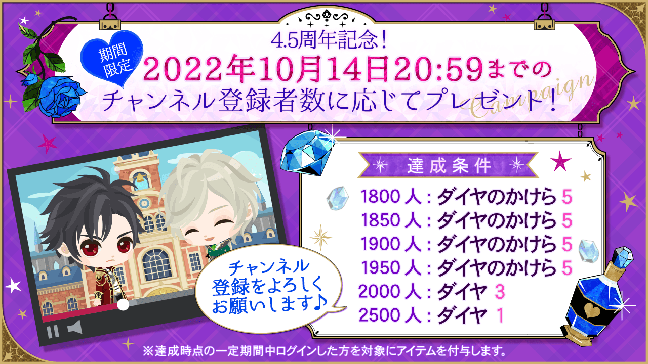 また、配信にあわせて、プレゼントキャンペーンを実施中です。10月14日(金)20:59までのチャンネル登録者数に応じてアプリ内アイテムをプレゼントいたしますので、ぜひチャンネル登録をして本配信をお待ちください。