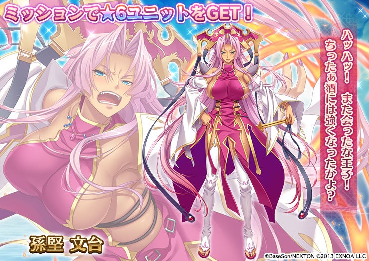 コラボミッション「異世界の恋姫と悪魔商会の陰謀」では、特定の条件を満たすと、レアリティブラックの「孫堅 文台」が手に入ります!ぜひ仲間にしてください!