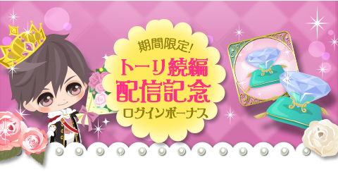 トーリ続編の配信を記念して、ログインボーナスを実施いたします。期間中アプリを起動してアイテムを手に入れてください。