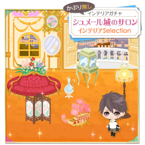 シュメール城のサロンに合うインテリアガチャを実施いたします。この機会にGETして「シュメール城のサロン」を完成させてください♪