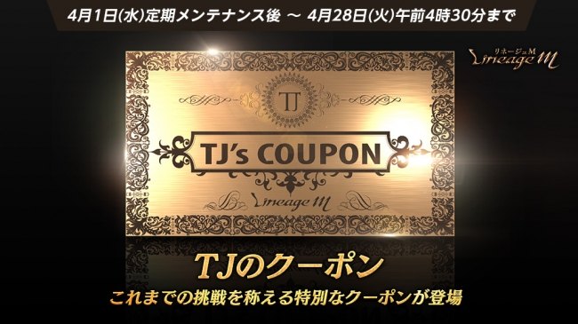新職業「竜闘士」&最新アップデート「EP.2 The Chain」の実装を記念した「TJのクーポン」が4週にわたり順次登場します。