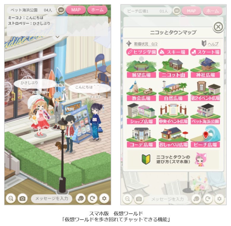 株式会社スマイルラボ(本社:東京都江東区、代表取締役社長:伊藤 隆博、以下「スマイルラボ」)が運営するPCブラウザ型の2Dメタバース『Nicotto Town(ニコッとタウン)』( https://www.nicotto.jp/ )は、スマホ版『仮想ワールド』を実装いたしました。