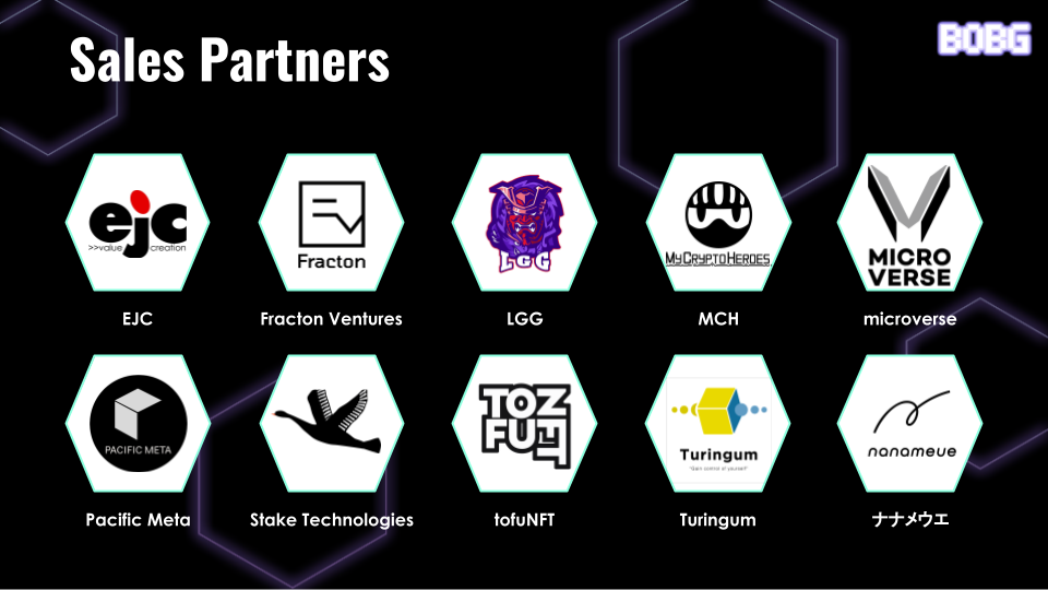 BOBG PTE. LTD. (本社:シンガポール、代表取締役:増山健吾、以下BOBG社)はこの度、計10社の国内外ブロックチェーン関連企業、及び大手企業に『Sales Partner』としてご参画いただくことを発表いたします。本サポート体制の強化により、一層の国内ブロックチェーン事業者のグローバル進出を加速いたします。