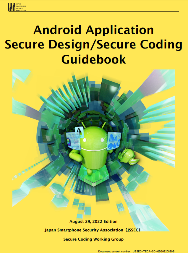 一般社団法人日本スマートフォンセキュリティ協会(JSSEC:会長 佐々木 良一)の技術部会 セキュアコーディングWG(リーダー 宮崎 力)は、2012年6月に公開した『Android アプリのセキュア設計・セキュアコーディングガイド』(以下 本ガイド)の14版目の改定版である2022年8月29日版 英語版を公開しました。