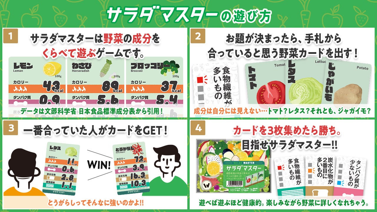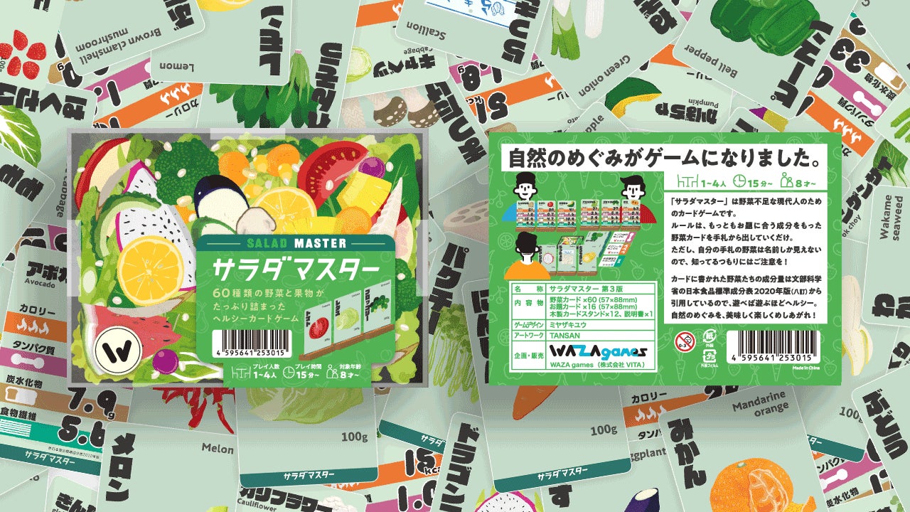 ボードゲームの企画・制作を手がけるWAZA gamesは、2022年11月より、野菜の成分で遊ぶ人気ボードゲーム『サラダマスター』をリニューアルして発売します。