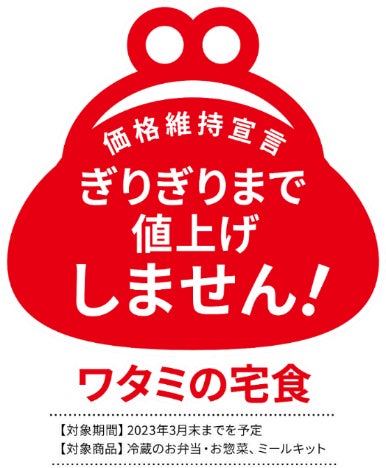 「ワタミの宅食」は、2023年3月末まで、現行の商品価格※を維持し、値上げせず提供することを決めました。食材・エネルギー等の原料価格の高騰、そして急激な円安が続いており、当社においても他社と同様、大きく影響を受けております。お客さまの家計への負担を増やさず、日々の食生活を少しでもサポートしたいという思いから、ぎりぎりまで値上げしない方針です。仕入れ・購買方法の見直し、製造工程の改善など、自社で可能な限りのコスト削減や合理化を図り、品質を保ちながら価格維持に努めます。2023年3月以降については、今後の経済市況・為替の変化を踏まえて判断してまいります。