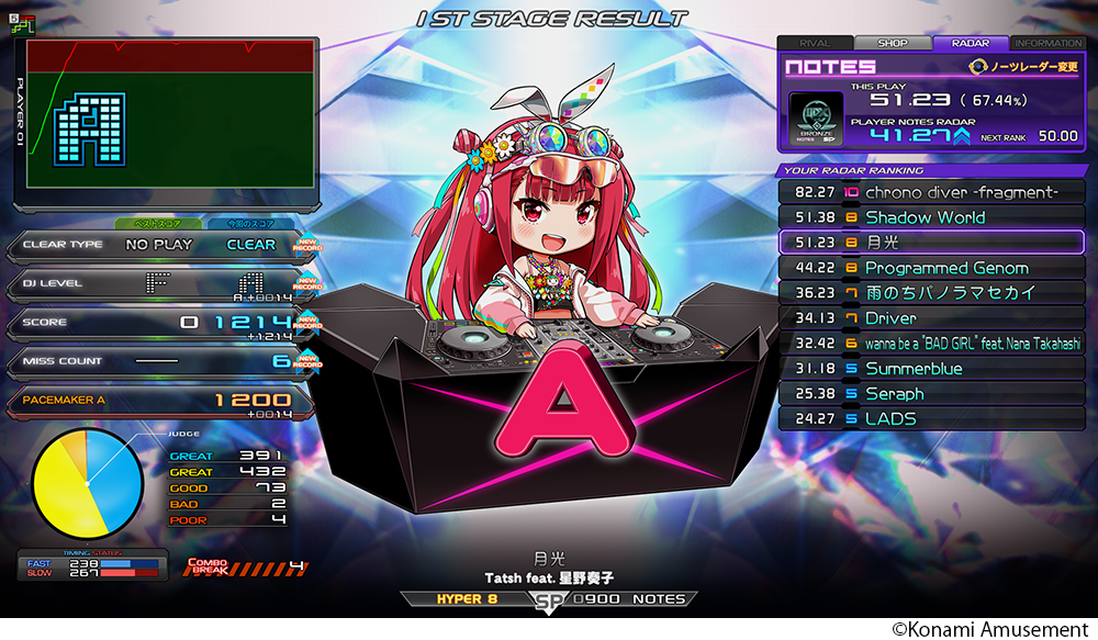楽曲の譜面傾向が分かるノーツレーダーが、プレー上達をサポートするためパワーアップ!