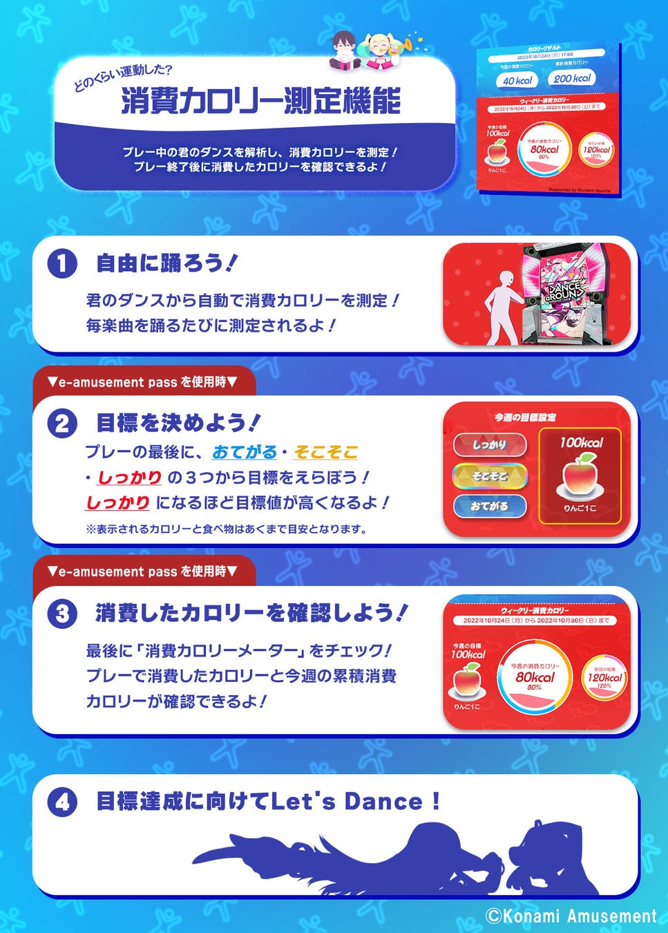 本機能の追加により、ゲームプレーにおける消費カロリーの記録と表示や目標消費カロリーの設定が可能になり、ゲームを遊びながら運動に繋げられる要素が増え、ダイエット・エクササイズ目的でも楽しめるようになりました。