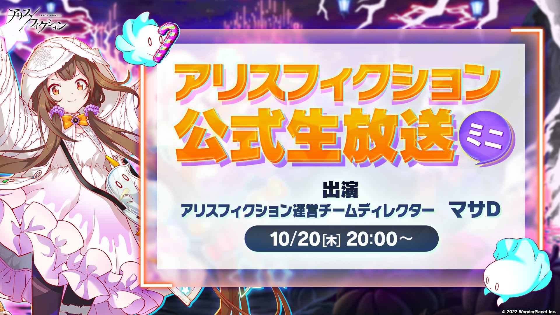 本日20時より「『アリスフィクション』公式生放送ミニ」を配信いたします!