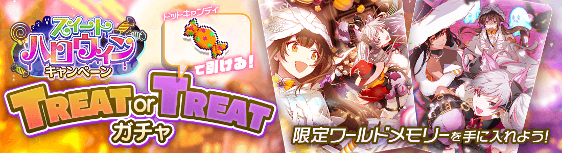 「ドットキャンディ」300個を集めると「TREAT or TREATガチャ」を1回引くことができます。