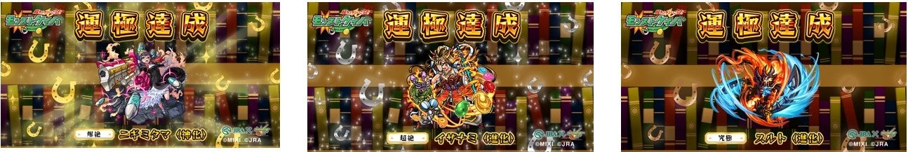 JRA FUN公式Twitterアカウント(@JRAFUN_Official)をフォローし、 「#追憶の競馬書庫」「#モンストケイバ」を付けて、Twitterに「運極達成」画面をシェアしていただいた方の中から抽選で、10名様に「EJOICA電子マネーギフト1万円分」をプレゼントいたします。