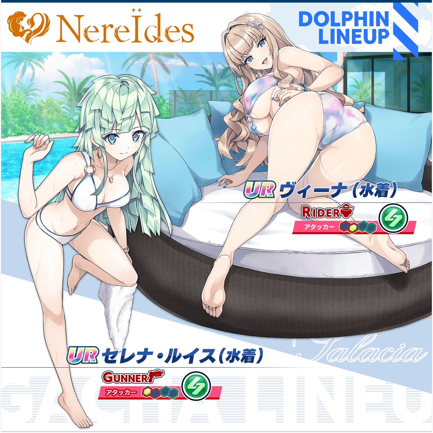 全員オリジナルデザインの水着を着たドルフィンが入手できるリリース記念ガチャを開催!KIRISHIMA、NereÏdes、浦見製鉄所の10名をラインナップ♪