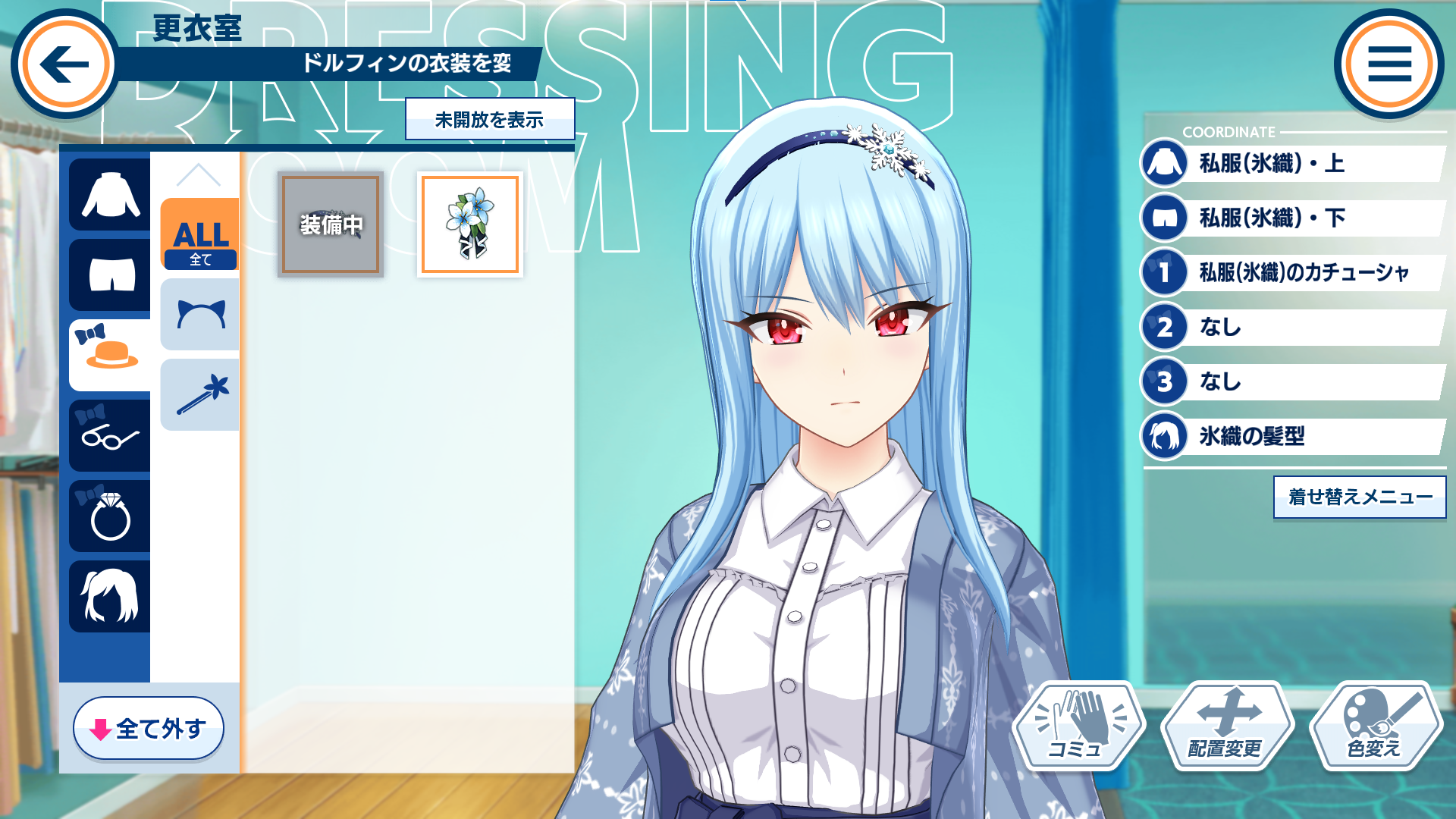 『シノマス』でおなじみの「コミュ、ジオラマ」や、トップスとボトムス別々の組み合わせでさらに自由度の上がった「着せ替え」など、ドルフィンたちとの”ふれあい”が楽しめる機能も充実!