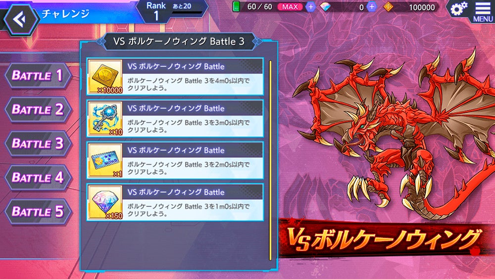 バトル毎に目標となるクリア秒数が設定され、達成することで報酬が獲得できます。