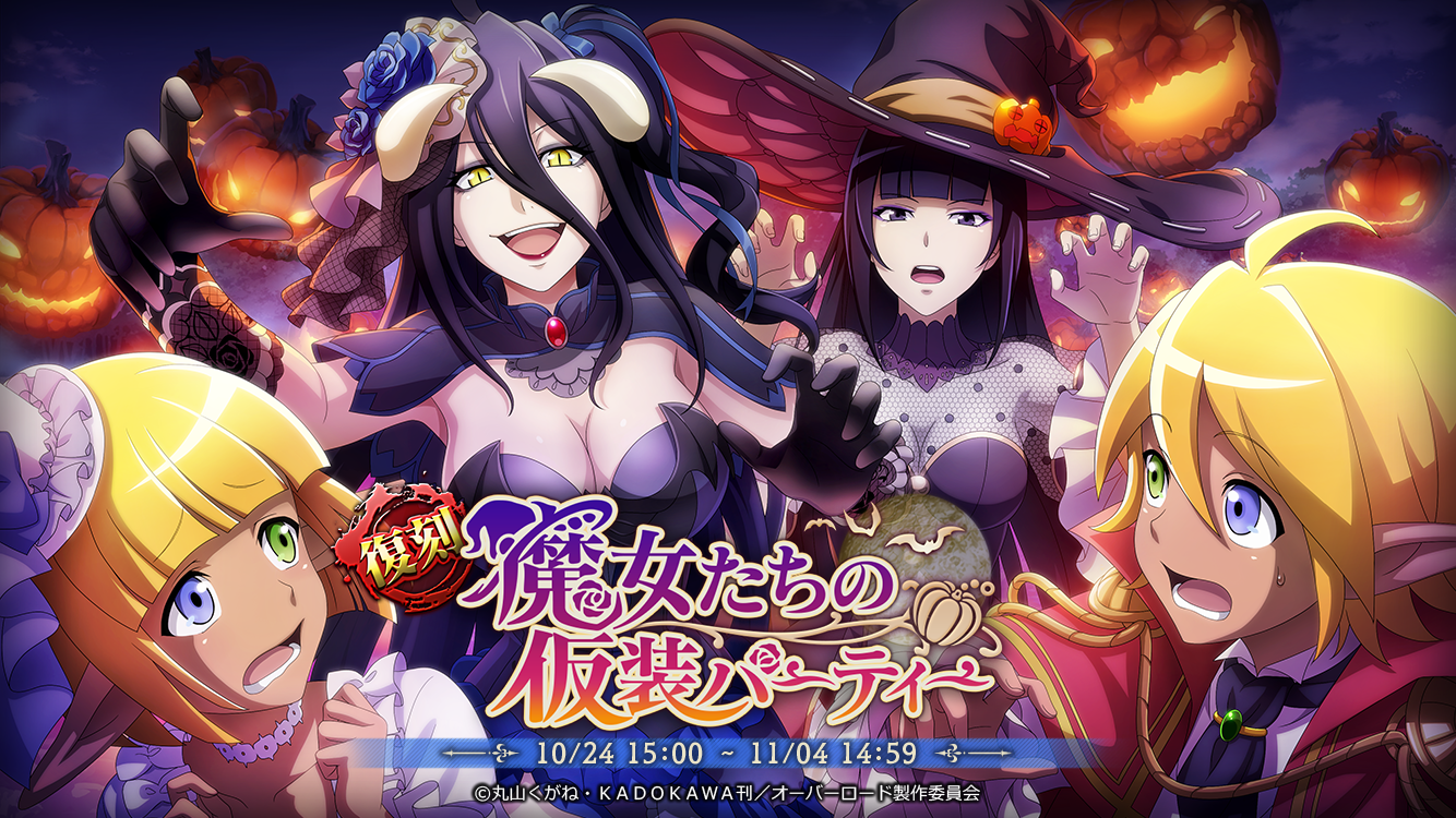 10/24よりイベント『[復刻]魔女たちの仮装パーティー』を開催いたします!イベント連動召喚では『★5【艶色魔女】アルベド』『★5【婉麗魔女】ナーベラル』が復刻登場!有償限定召喚の他、無償混沌石でもご利用いただけるピックアップ召喚も同時開催!