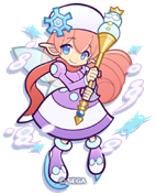 効果:1ターンの間、なぞり消しの代わりにきいろぷよにぬりかえる「とくべつルール」を発動し、味方全体の連鎖係数を8倍にする