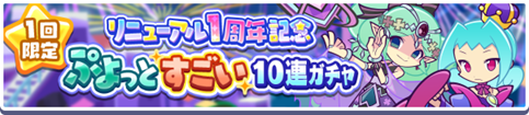 ◆「1回限定!リニューアル1周年記念ぷよっとすごい10連ガチャ」開催